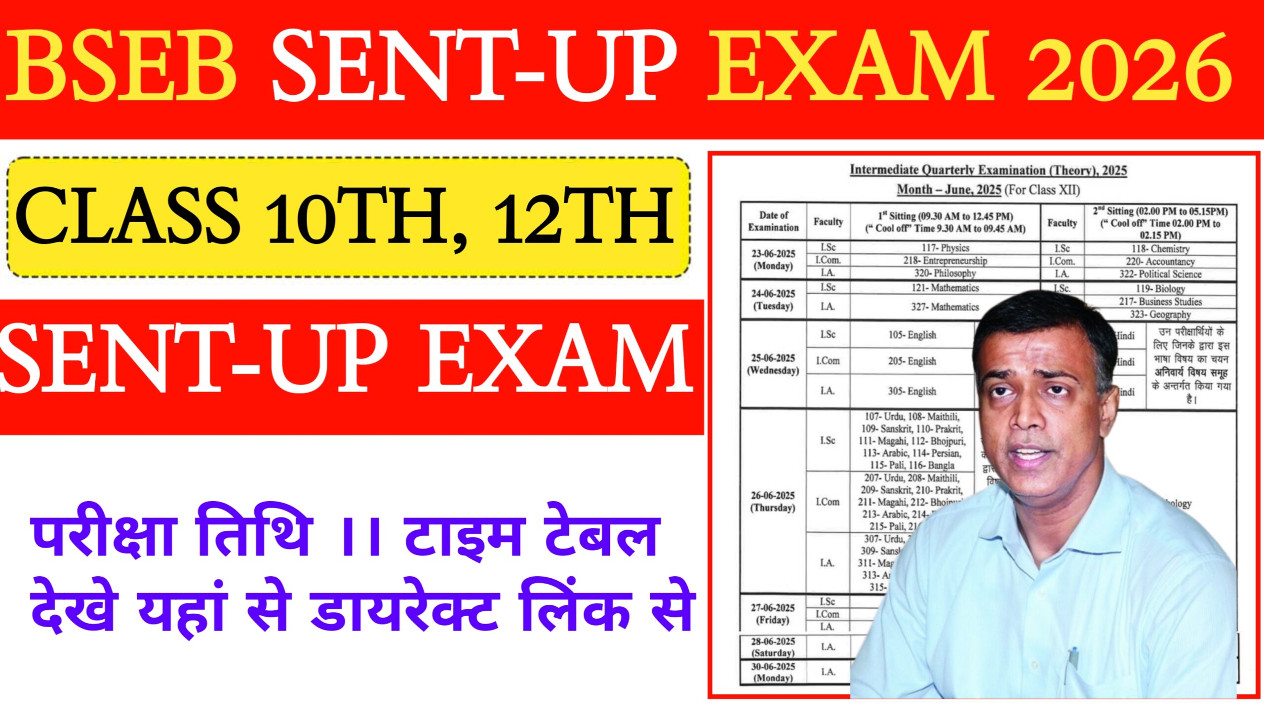 Bihar Board 10th 12th Sent-Up Exam 2026 Time Table: यहां से देख पाएंगे पूरी शेड्यूल !