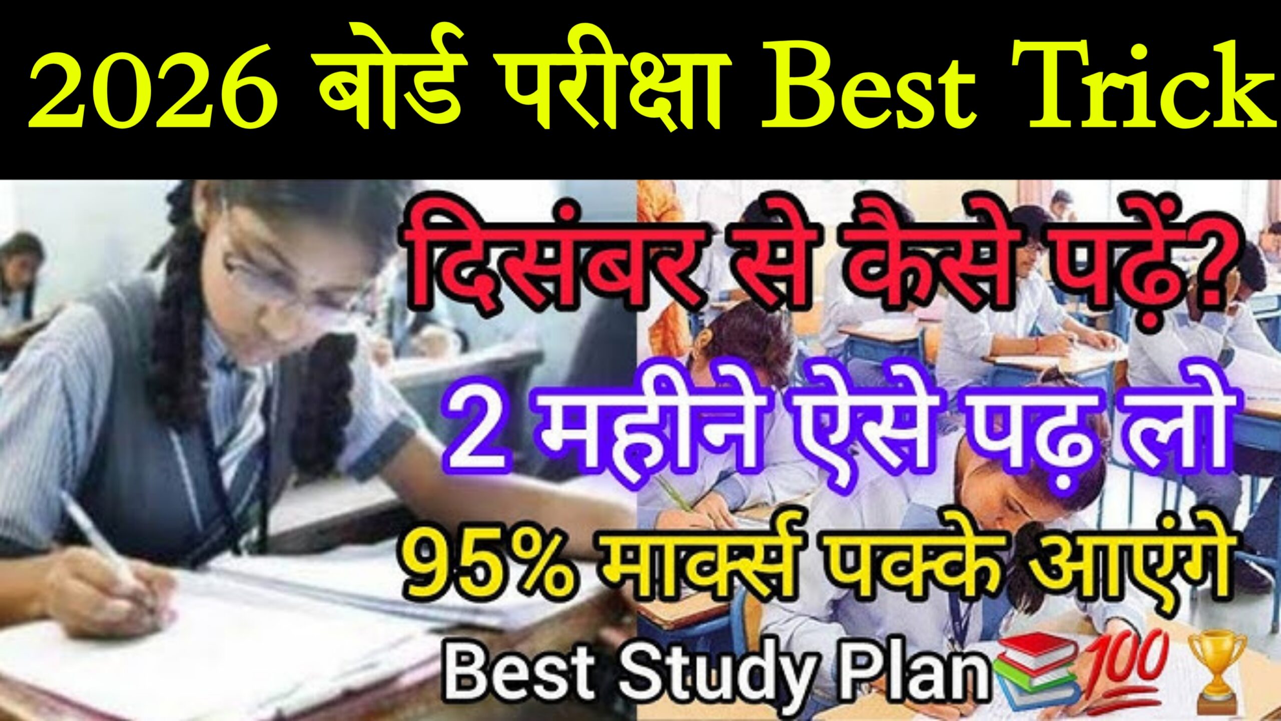 अभी तारीख 1 दिसंबर 2025 है – आपके पास बोर्ड परीक्षा के लिए पूरे 65–70 दिन बचे हैं। अगर आप रोज़ सही तरीके से पढ़ाई करें तो 95%+ मार्क्स बिल्कुल पक्के हैं। नीचे दिया गया प्लान 10वीं और 12वीं दोनों के लिए काम करेगा (साइंस, कॉमर्स, आर्ट्स किसी भी स्ट्रीम के लिए)।
