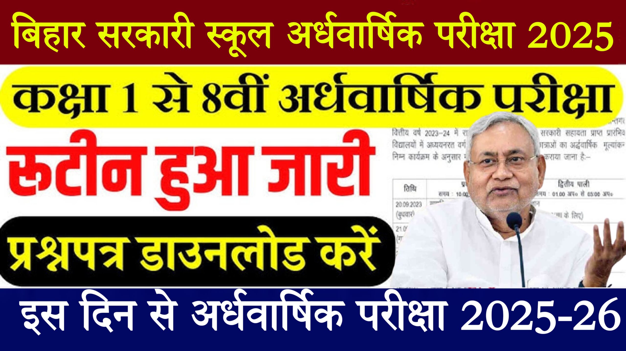 बिहार स्कूल कक्षा 1-8 द्वितीय त्रैमासिक परीक्षा रूटीन 2025