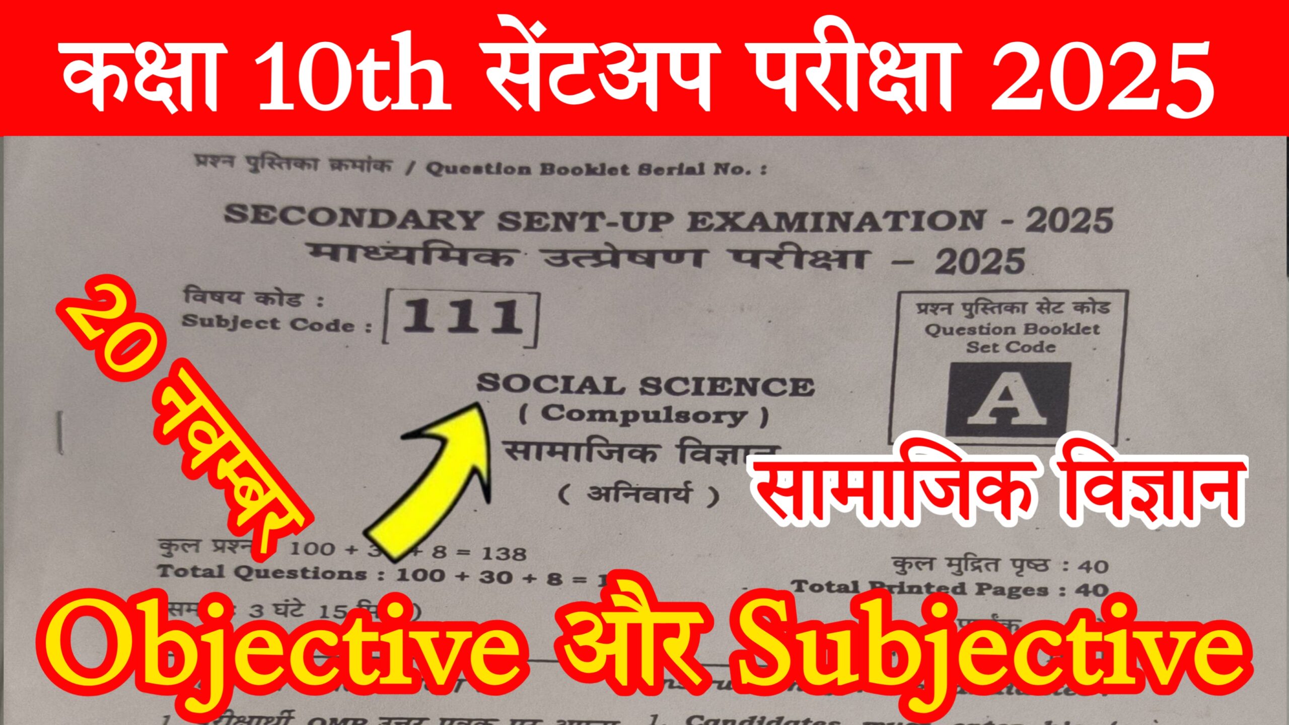 नमस्कार दोस्तों! बिहार बोर्ड मैट्रिक परीक्षा 2026 देने वाले सभी छात्र-छात्राओं के लिए सबसे बड़ी खबर। स्कूल स्तर पर सेंट अप परीक्षा 2025 चल रही है और सामाजिक विज्ञान (Social Science) का पेपर 21 नवंबर 2025 (पहली पाली) को है।
