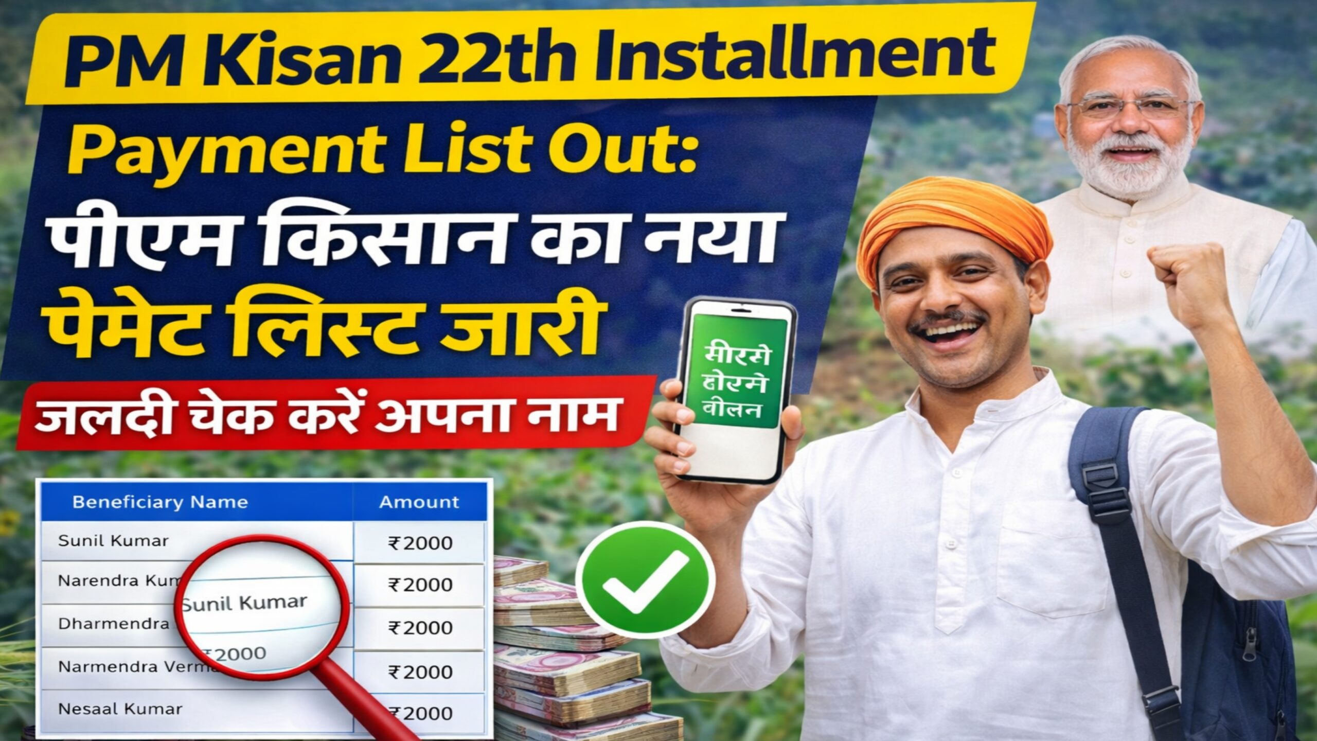 अब देशभर के किसानों को PM Kisan 22th Installment का इंतजार था। हाल ही में इस किस्त से जुड़ा बड़ा अपडेट सामने आया है और सरकार द्वारा नई Beneficiary Payment List भी अपडेट की जा रही है। जिन किसानों का नाम इस सूची में होगा, उनके खाते में ₹2000 की राशि भेजी जाएगी।
